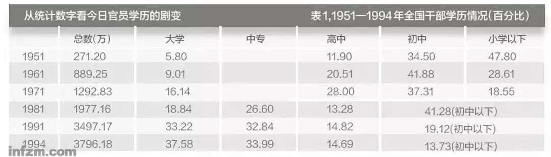 1978年的中国决策者面临着这样的局面:此前的政策失败危及党的合法性,朝野上下均期盼回归常态,军功入仕之路已告终结。一个颇为具体的问题必须面对:入仕的资格是什么?此后,官员文化程度的反弹到了令人惊讶的地步。